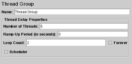 Loop Count: 请求发生的重复次数,如果选择后面的forever(默认),那么 请求将一直继续,如果不选择forever,而在输入框中输入数字,那么请求将重复 指定的次数,如果输入0,那么请求将执行一次。