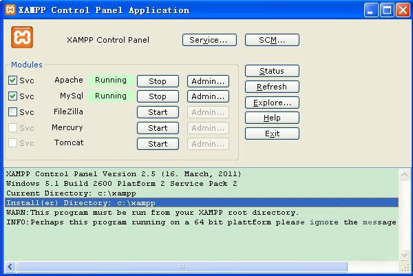 安装完后直接运行XAMPP Control Pannel,但是打开的时候看到MySQL的状态是Running了,但是Apache却没有。点击Start,却提示 Error: Apache service not started [-1]