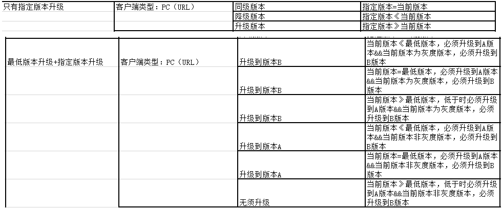 现已知需求:服务器支持对客户端的版本升级,存在两种升级规则: