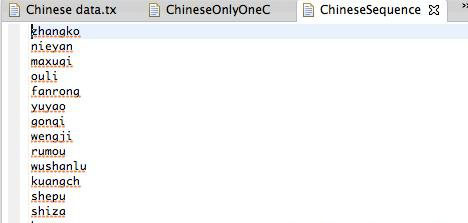 接下来是测试,第一步进行了网络上所有中文字的抓取,相当于准备好中文,英语,法语等各种语言组合的基础的字符串。接下来的例子是中文,其他语言以此类推。然后我们可以写一个很简单的程序将这些基础的字符串组合,变成如下图,这些txt文件保存在android的assets文件夹中,方便android程序读取。