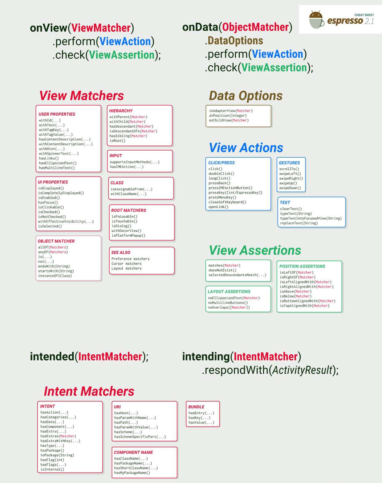 Espresso中提供了许多方法用于检测Intent的各个部分,下面是每个字段的对应关系