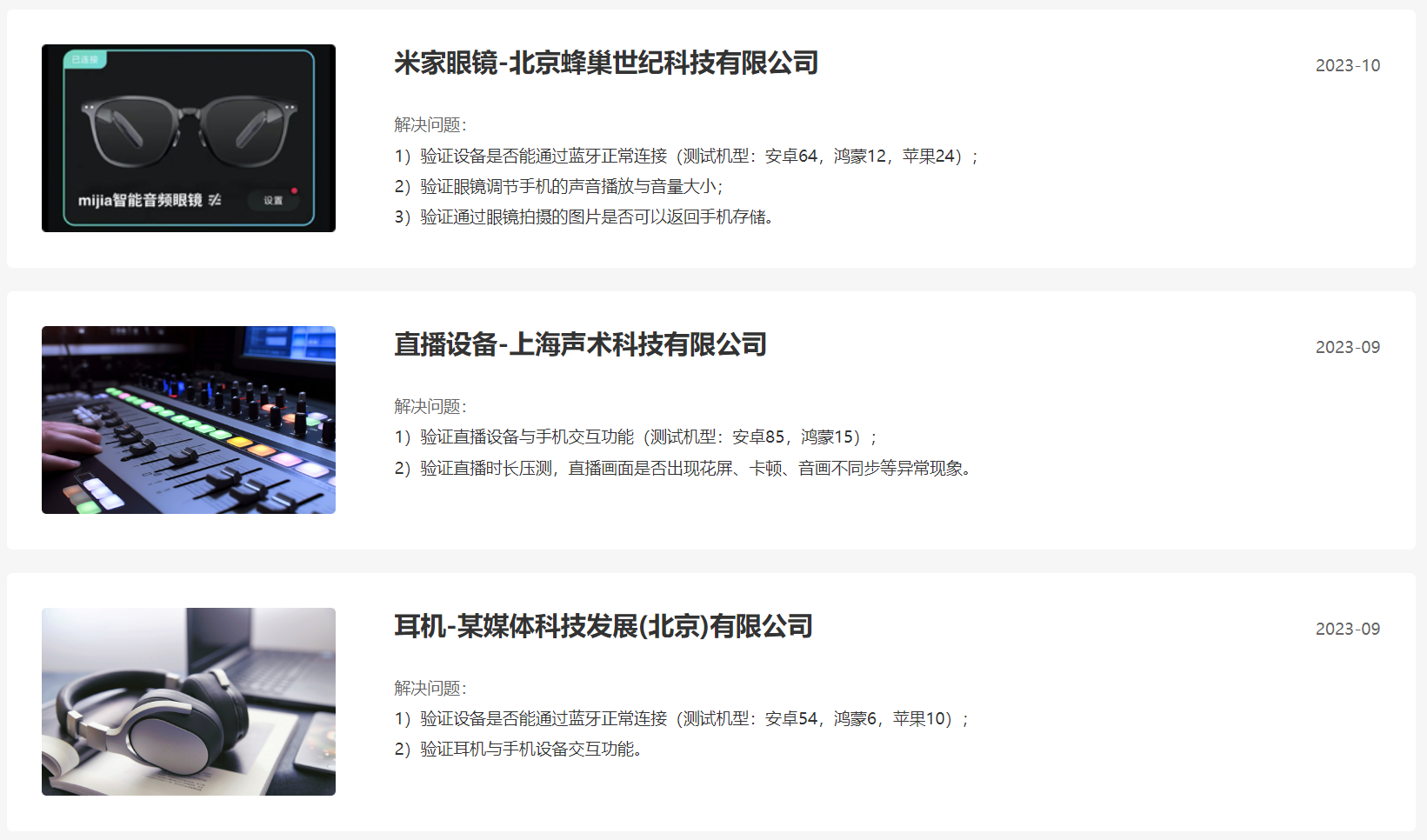 我们如何确保蓝牙设备之间的兼容性和互操作性,保证数据传输的稳定性和安全性,等等问题,蓝牙适配如何解决?专业的问题交给专业的人解决,产品在正式上市前,必须进行蓝牙适配测试,也叫智能硬件测试,你的产品要覆盖海量机型测试,top100、top300、top500……,这时我们就要选择一个满足需求的供应商测试服务,又叫“测试平台”。