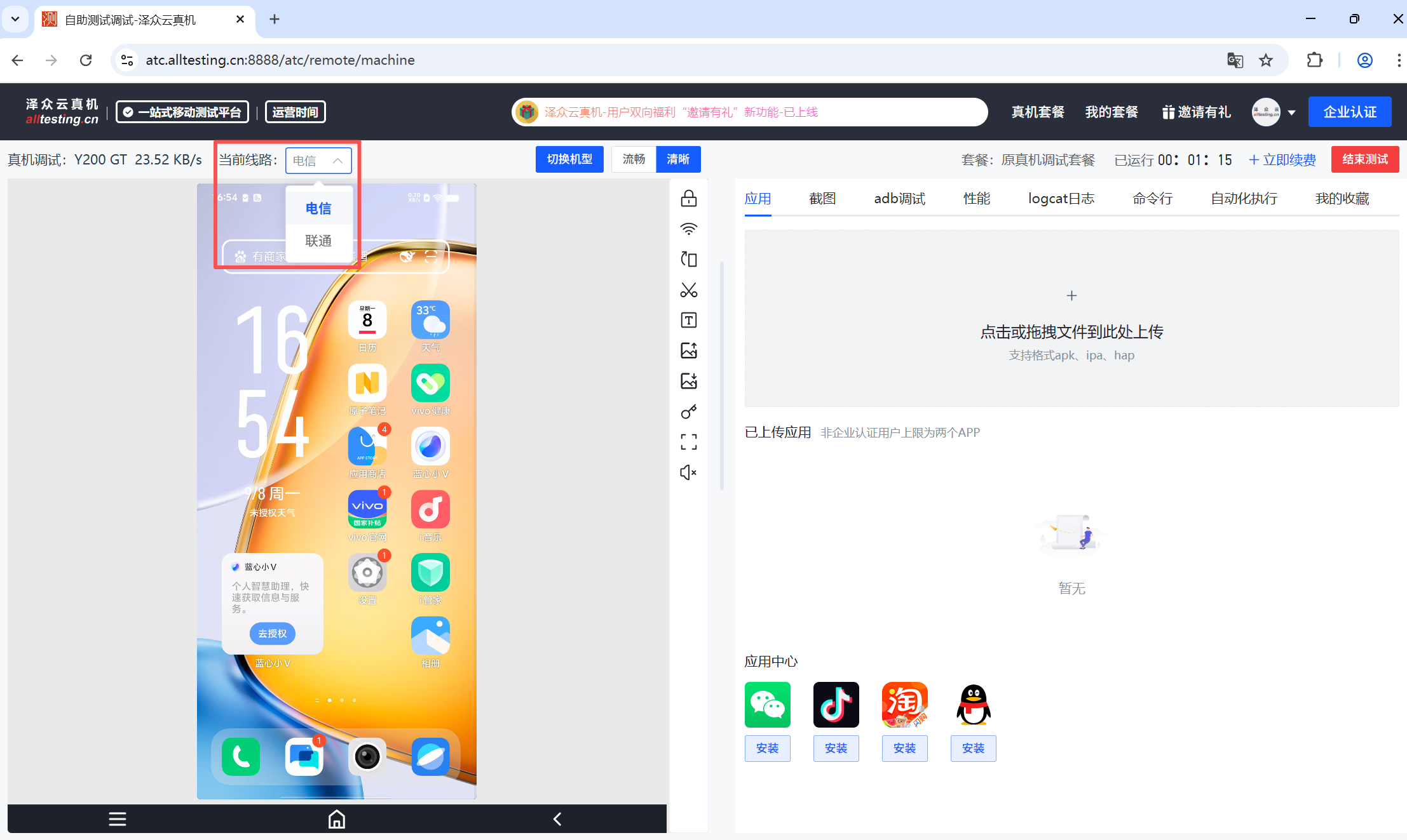 泽众云真机-远程真机调试支持网络多线路切换,让自助兼容性测试更流畅