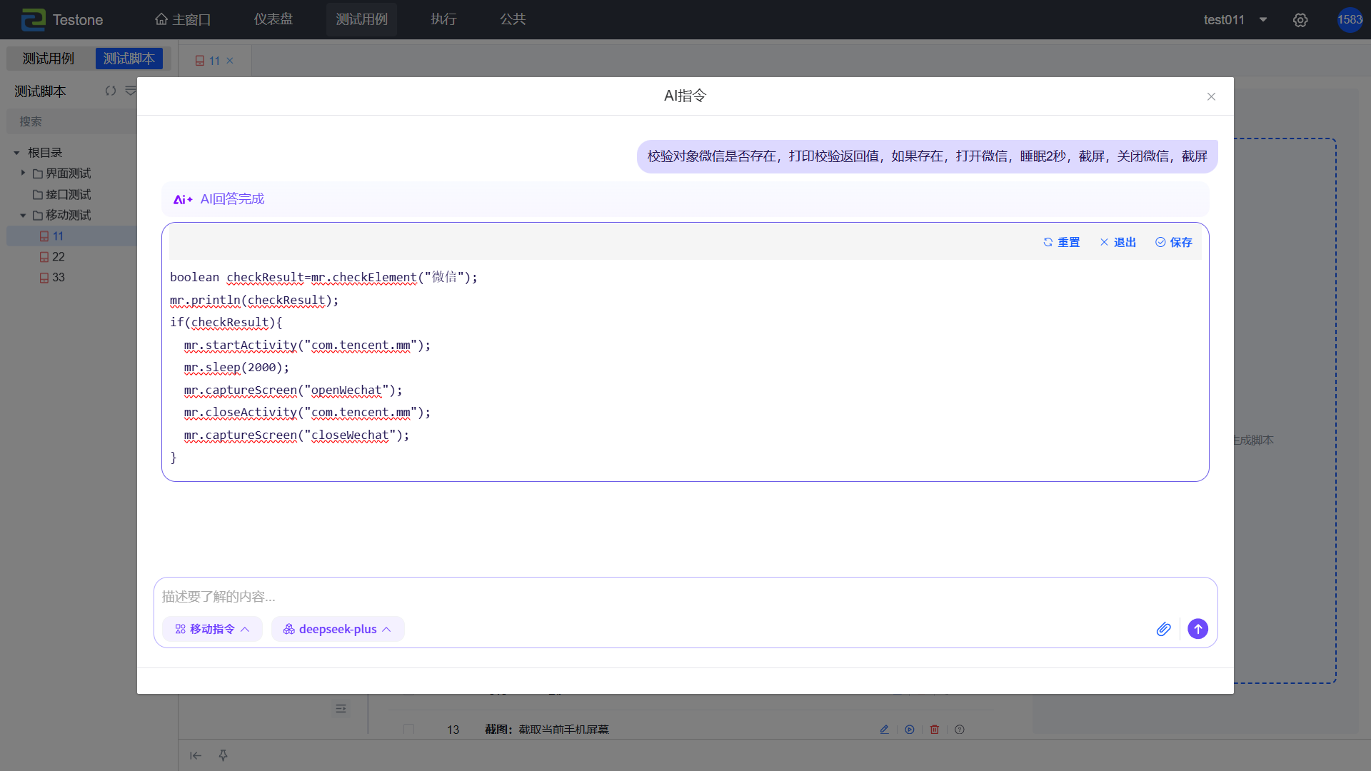 1、移动测试中AI 模型生成指令和执行,大模型赋能自动化测试落地。