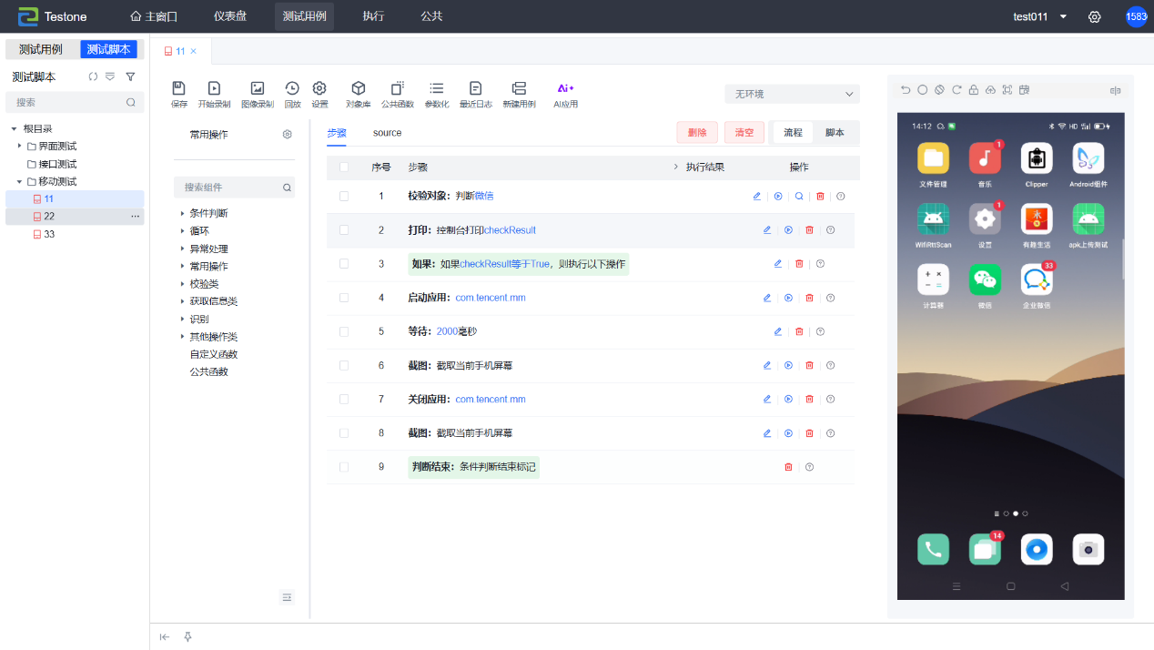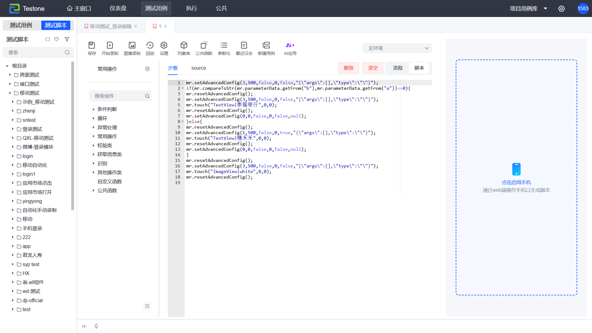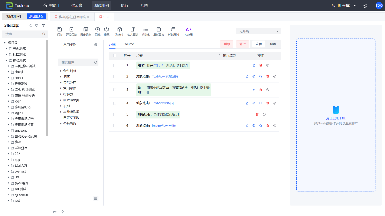 3、移动测试脚本编辑时,支持视图模式(自然语言)和专家模式自由切换