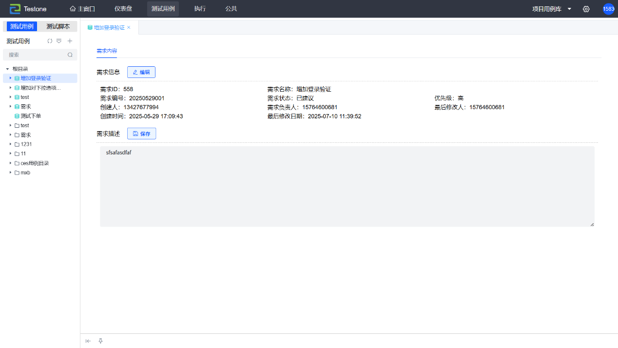 2、将测试需求和测试用例合并,用例和需求展示在左侧,更直观清晰。