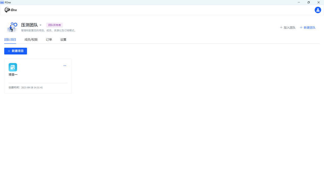 点击新建团队,可创建自己的团队,在自己的团队里面可以创建要压测的项目。