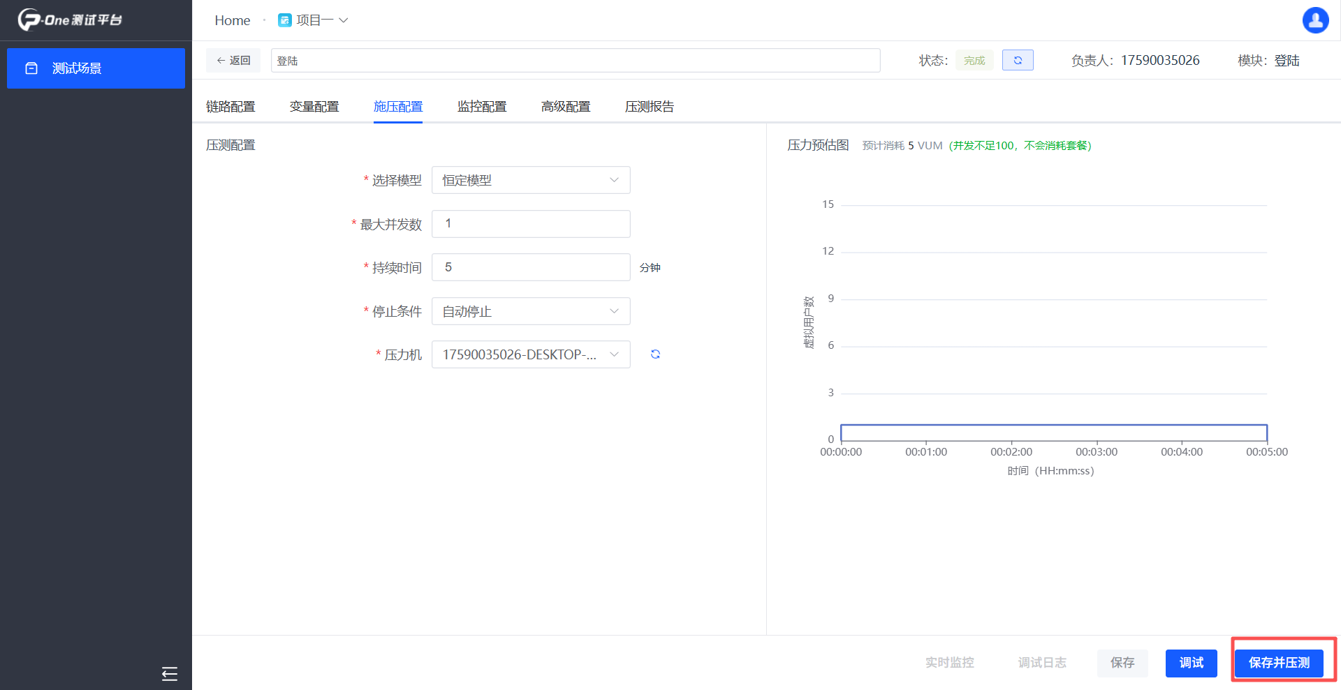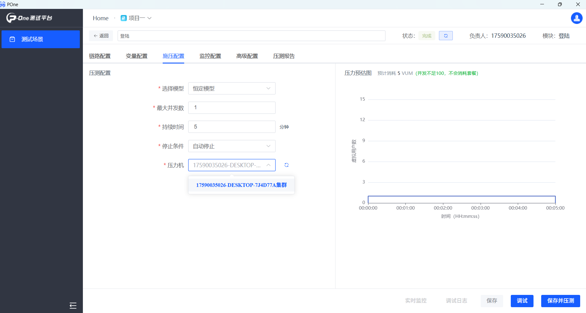 3.添加脚本后,进入链路配置页面,进行压测配置修改并选择压力机;
