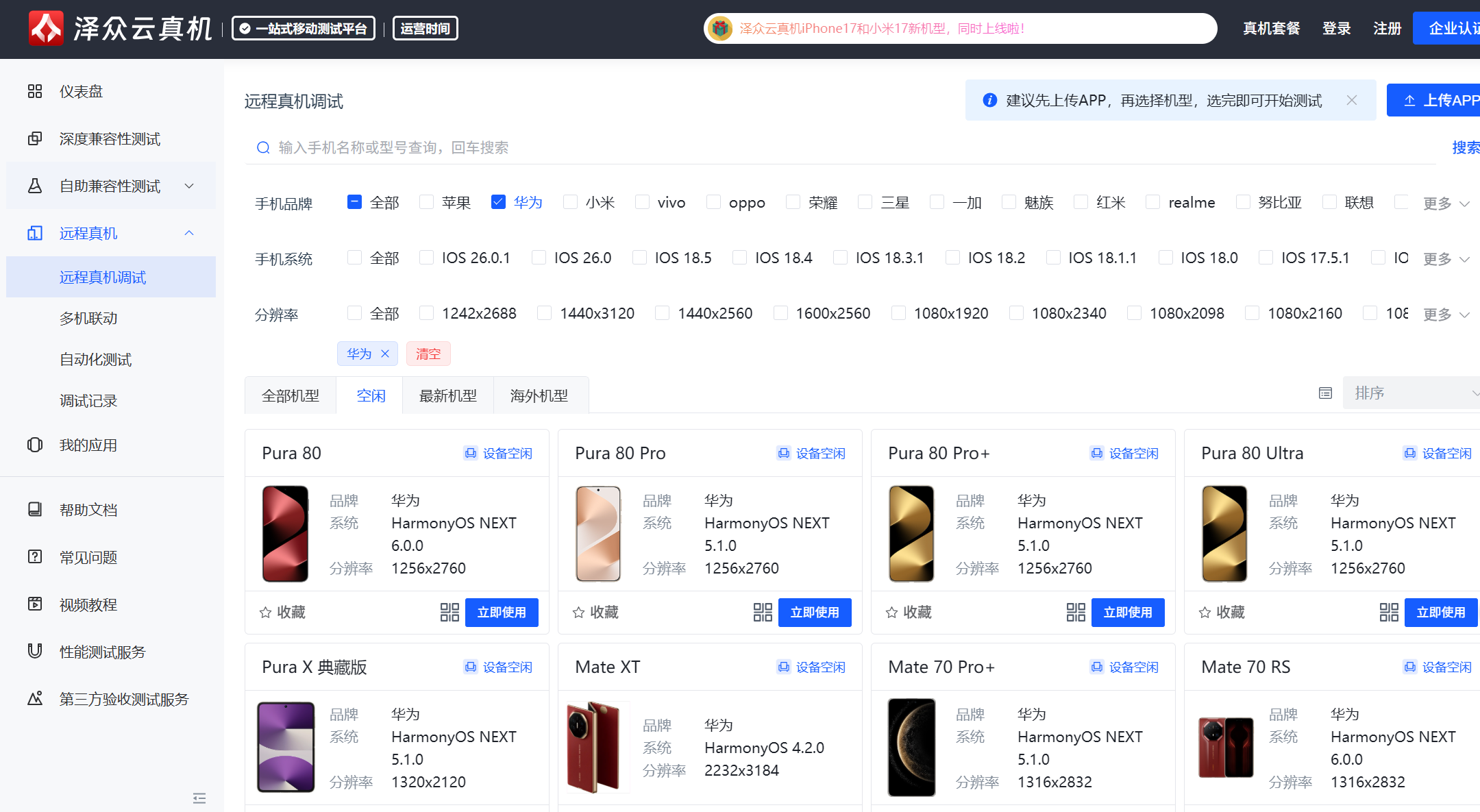 是否含主流/冷门机型、全系统版本(iOS/iPadOS/Android),支持折叠屏、5G 等新形态。