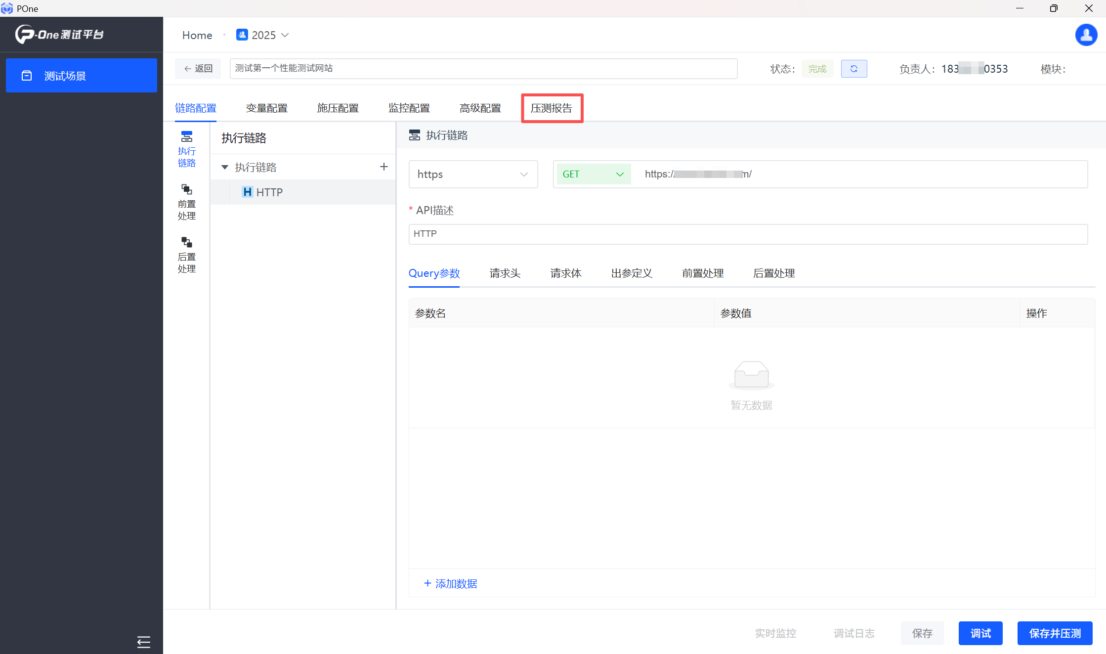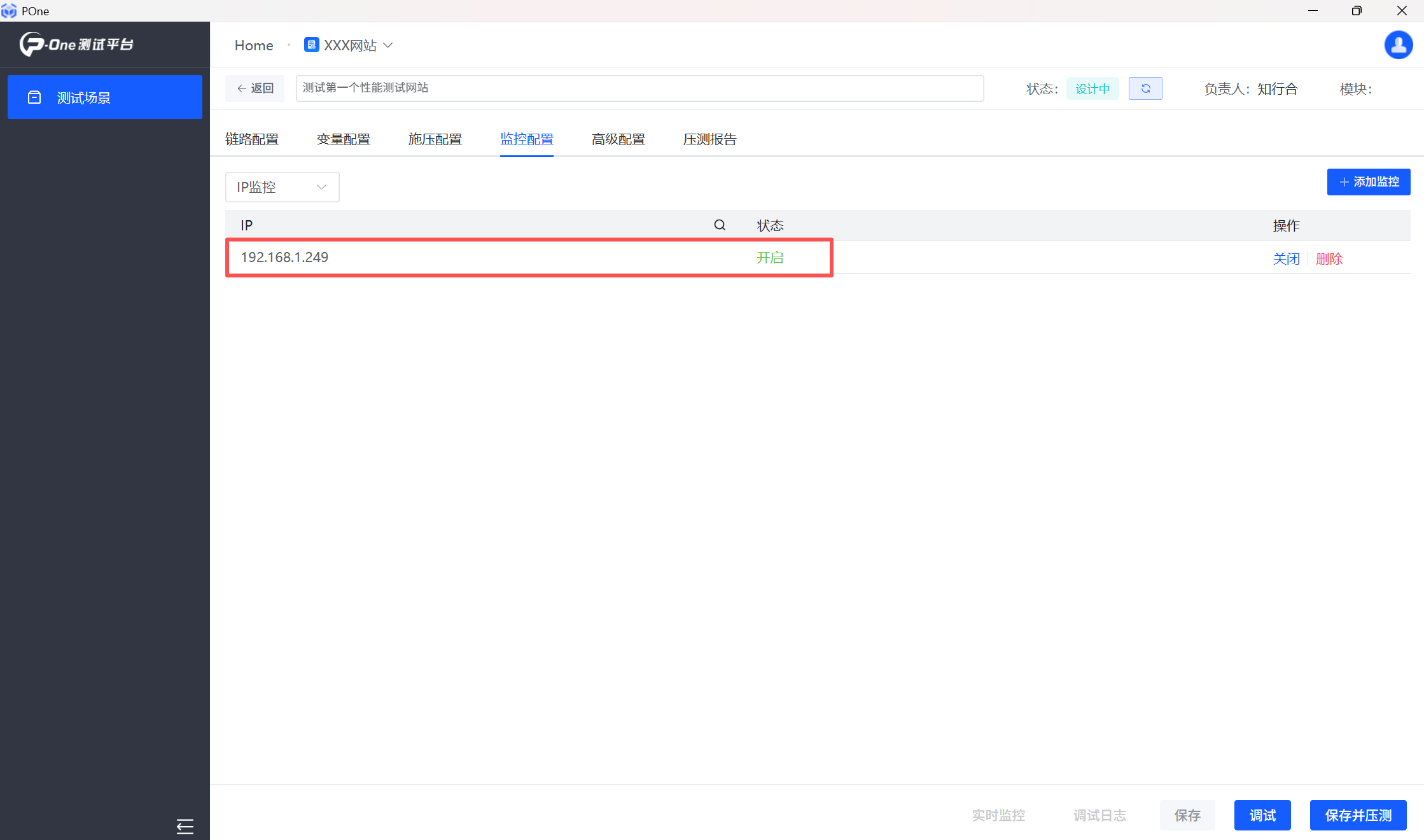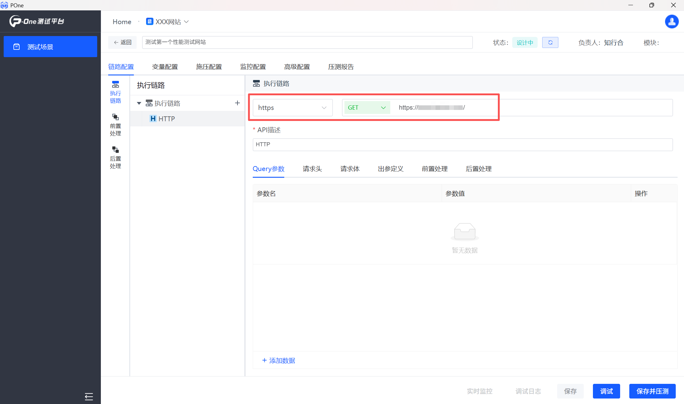 首先,先“保存”设置,然后“调试”设置,是否可用,最后在“压测”。