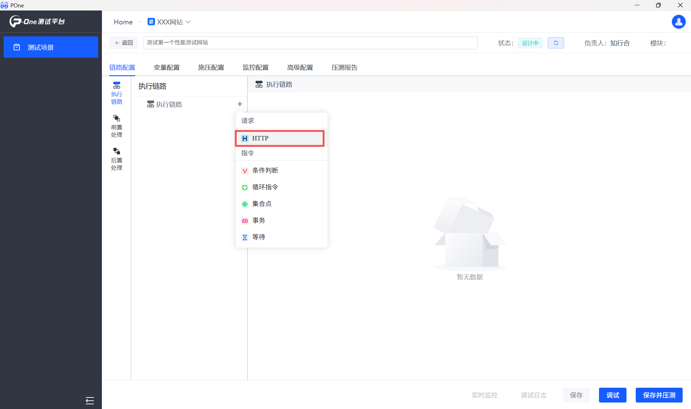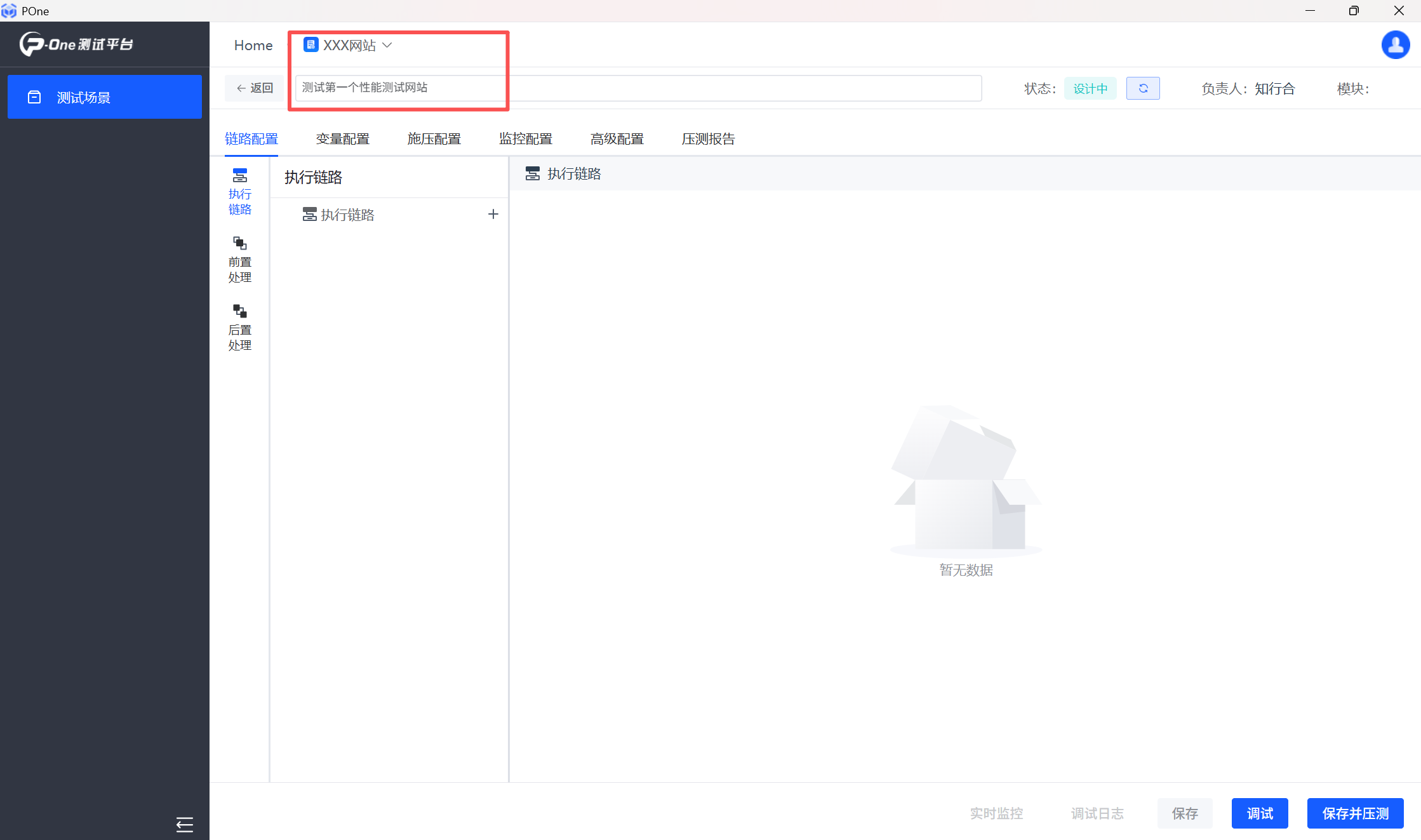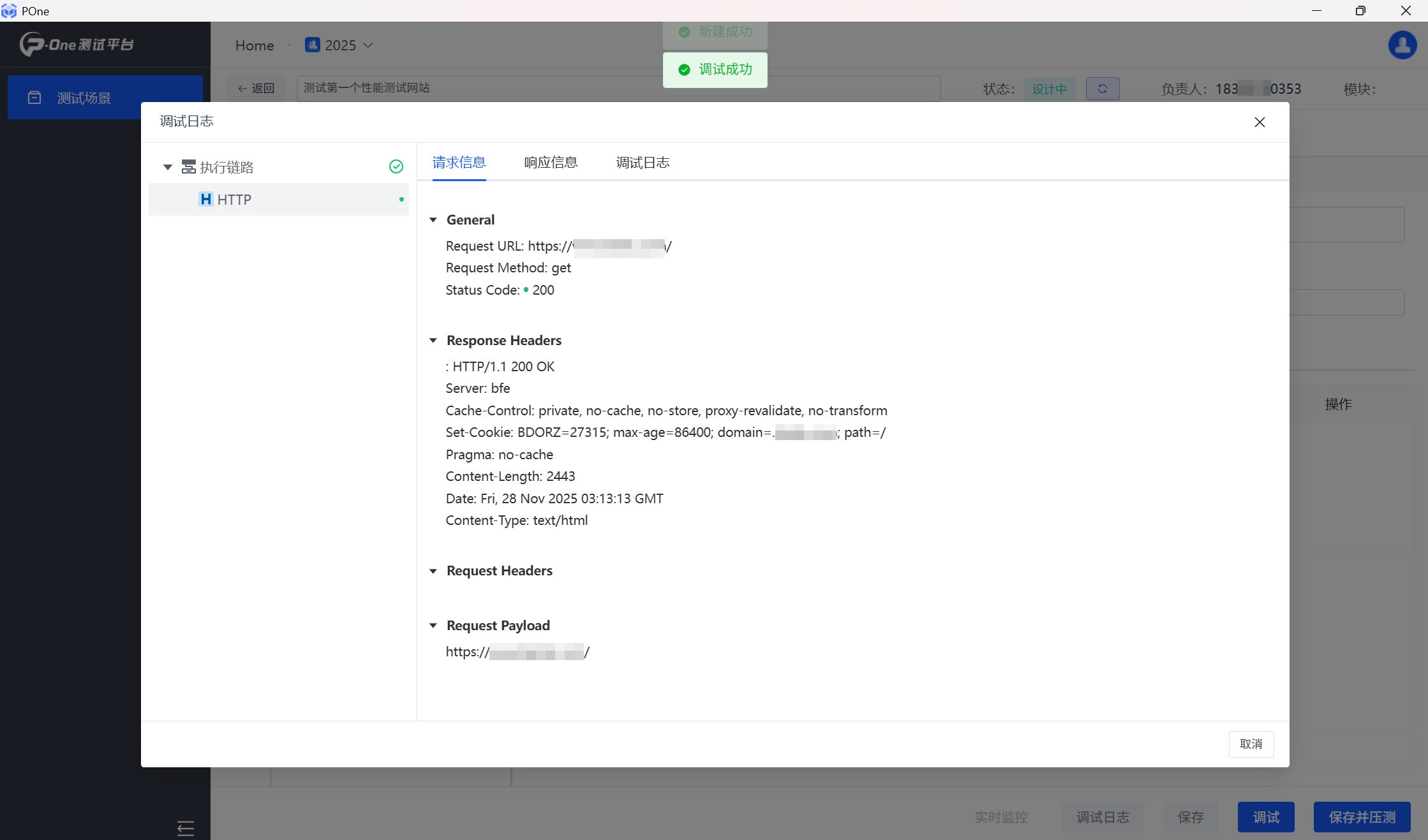 首先,先“保存”设置,然后“调试”设置,是否可用,最后在“压测”。