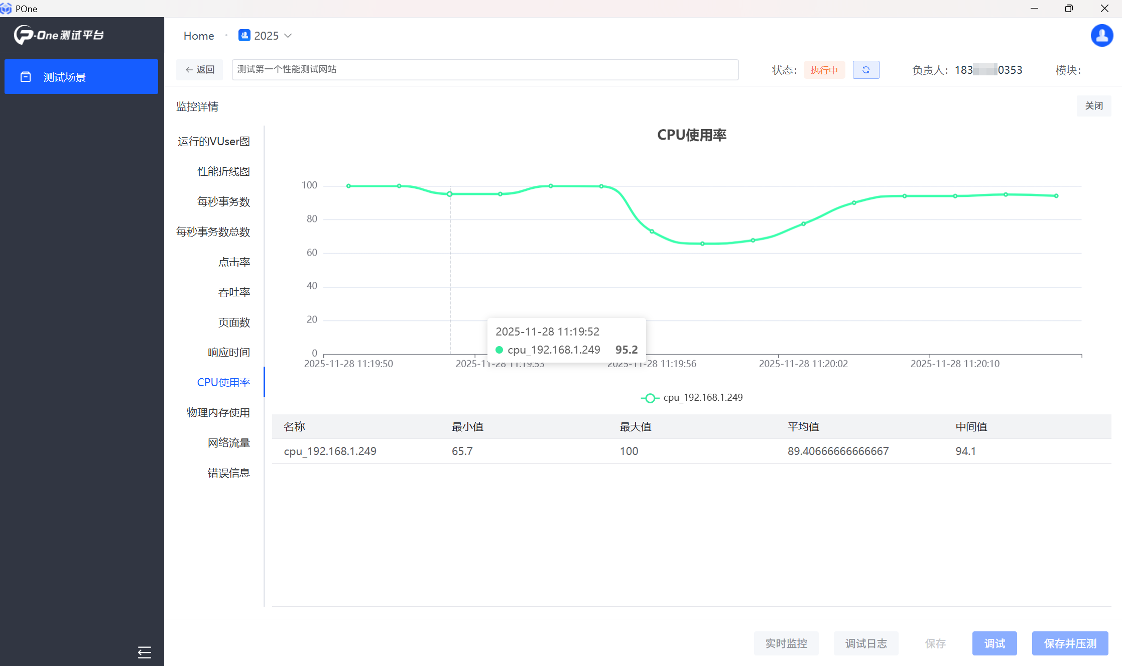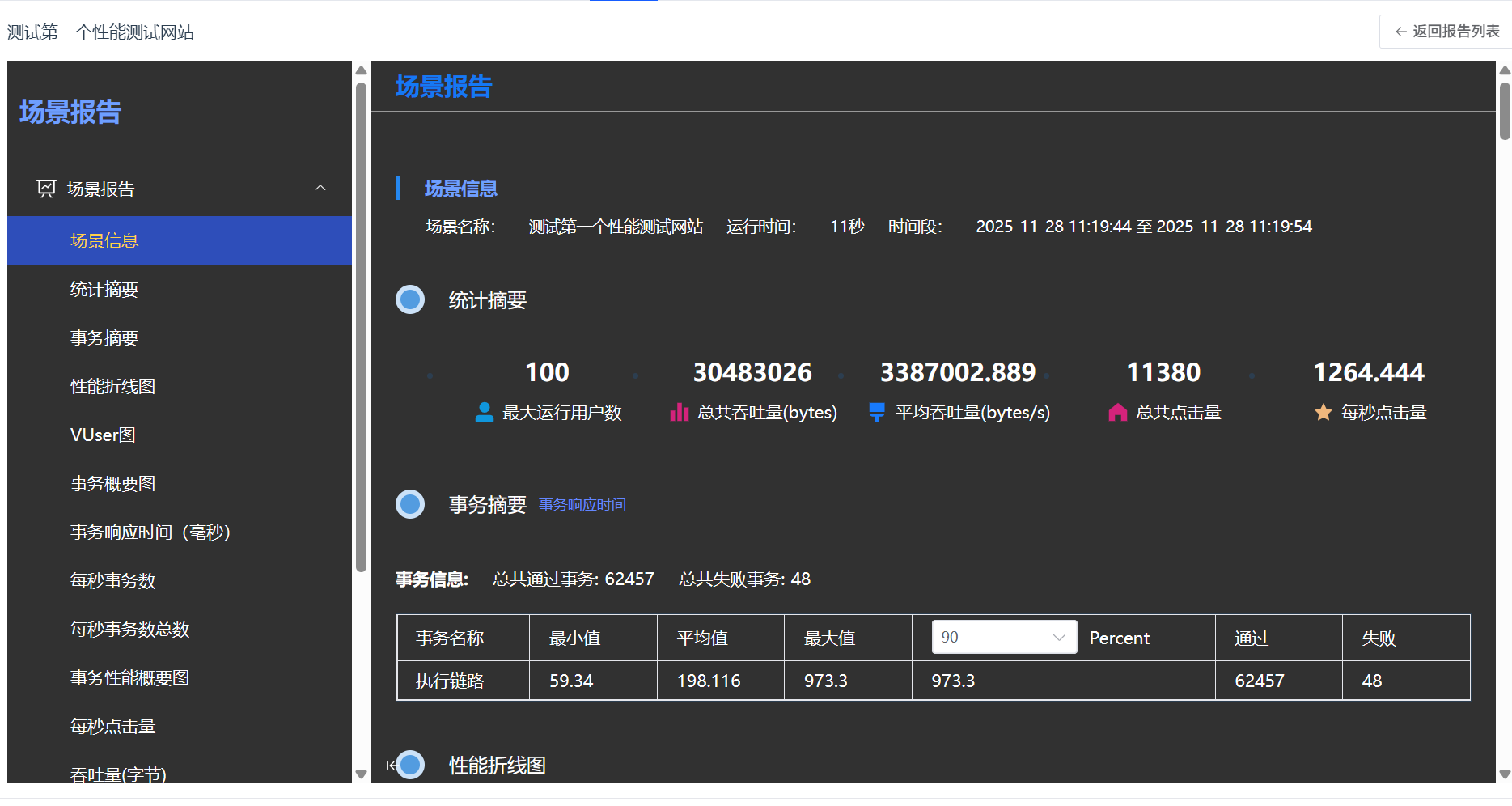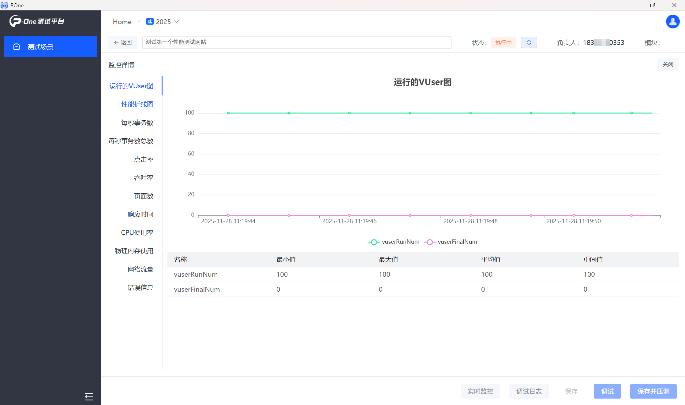 POne在压测过程中,我们可以查看实时监控,各种维度监控数据,如Vuser图、性能折线图,事务数等等。