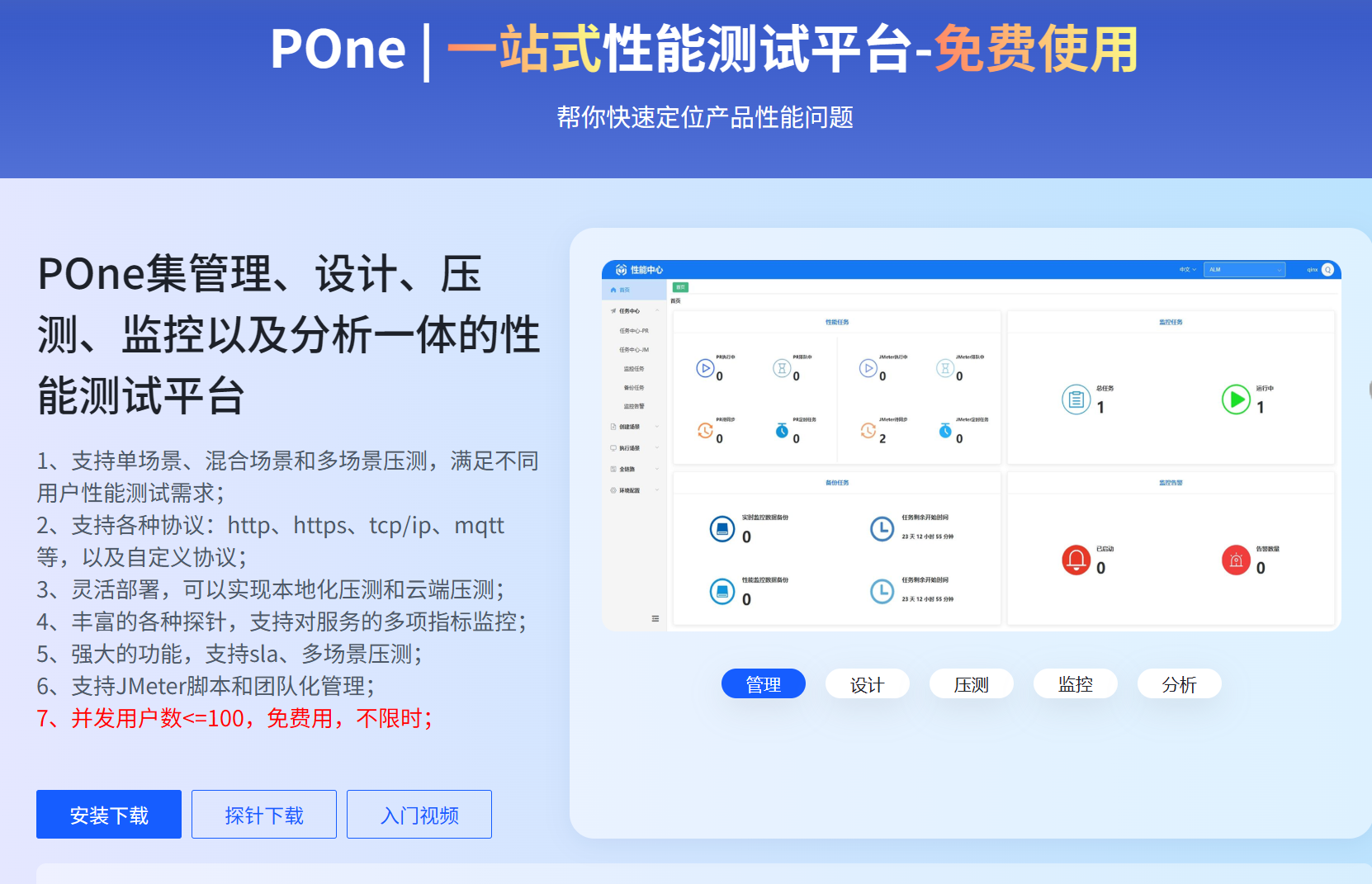 POne技术团队以客户需求为中心,继续升级和优化产品,有任何产品问题,请咨询在线客服人员,协助你定位问题。产品目标是让用户能够快速上手,一站式全链路性能测试平台,帮你快速定位产品性能问题。