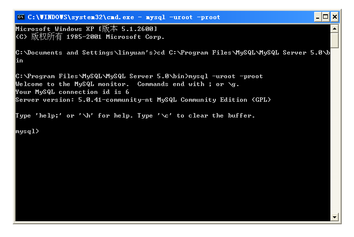 a)进入Mysql的bin目录,在cmd中输入cd C:Program FilesMySQLMySQL Server 5.0in(C:Program FilesMySQLMySQL Server 5.0in只是一个举例,用户需要根据自己的实际安装目录输入)