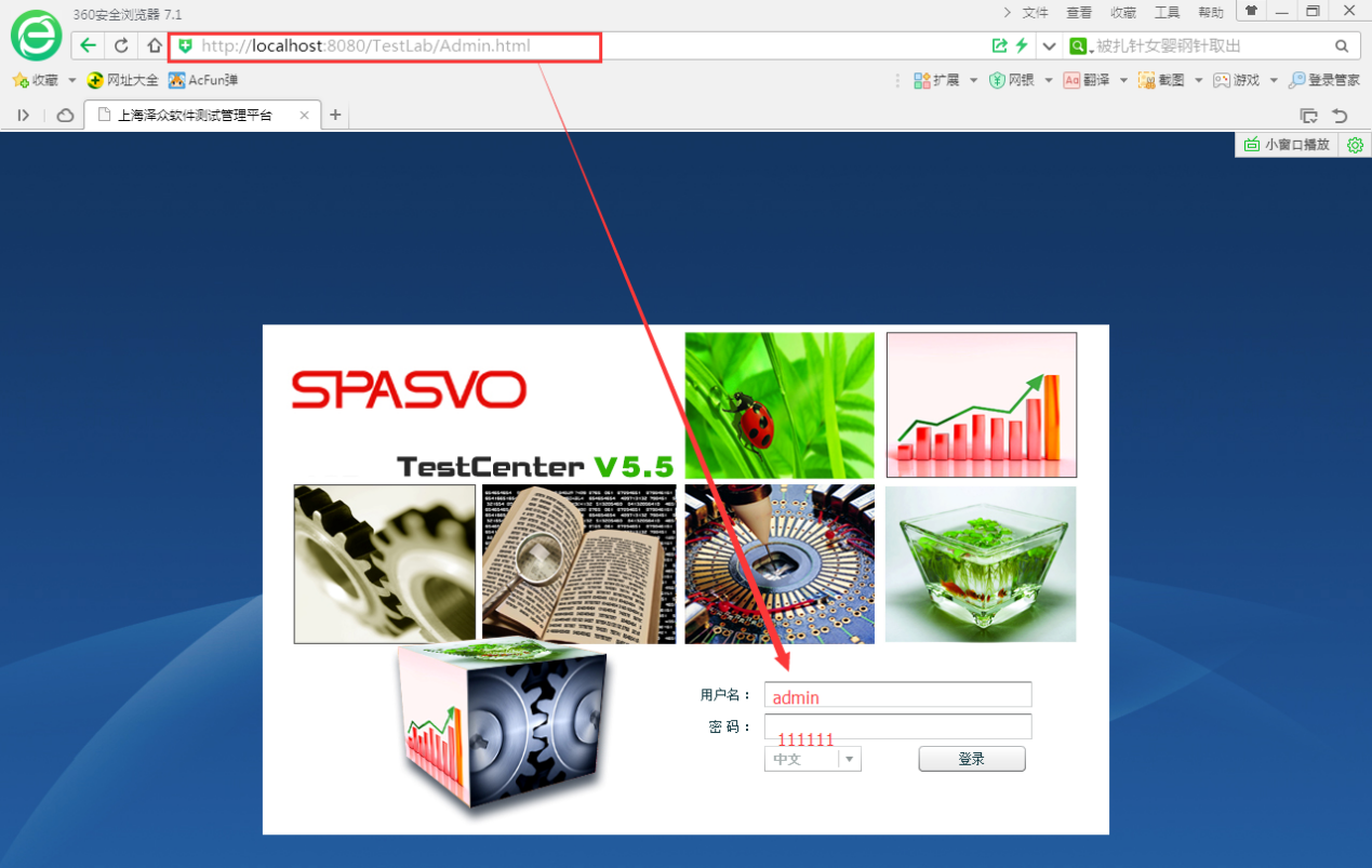 首先登陆到后台,后台地址http://localhost:8080/TestLab/Admin.html 后台的用户名:admin 密码:111111;前台的用户名需要在后台创建,然后到前台即可登录。如图所示: