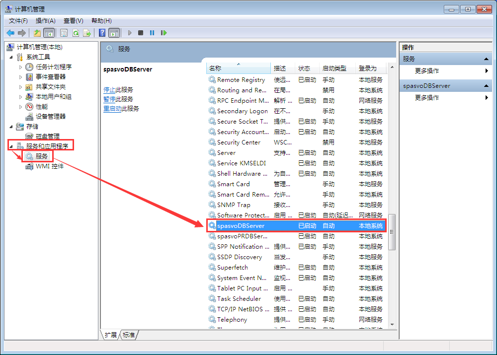2、点击服务和应用程序,点击服务,启动spasvoDBserver。