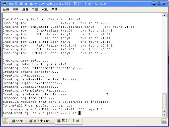 可以了,后进入Bugzilla目录,再运行checksetup.pl脚本,终于安装成功。