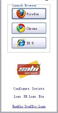 点击浏览器图标,会弹出相应的浏览器窗口(此时Sahi已经自动给浏览器配置了Sahi代理服务器)。