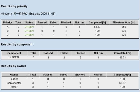 TestLink根据测试过程中记录的数据,提供了较为丰富的度量统计功能,可以直观的得到测试管理过程中需要进行分析和总结的数据: