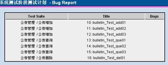 如果和bug跟踪系统连接的话,在下表中可以统计出每个测试用例的bug的数目