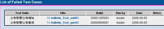 如果和bug跟踪系统连接的话,在下表中可以统计出每个测试用例的bug的数目