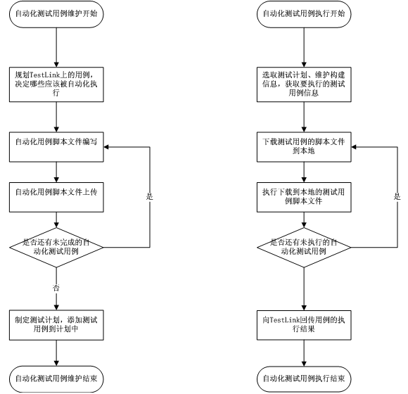 图 1 是使用 TestLink 管理自动化测试过程的流程图,它包括自动化用例维护和自动化用例执行两部分。自动化测试用例维护部分的流程图包括: