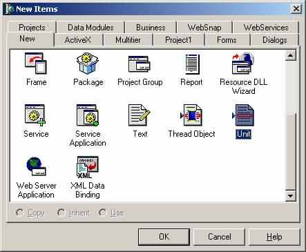 删除确省的Unit1(Form1),创建一个的Unit,注意不是Form.