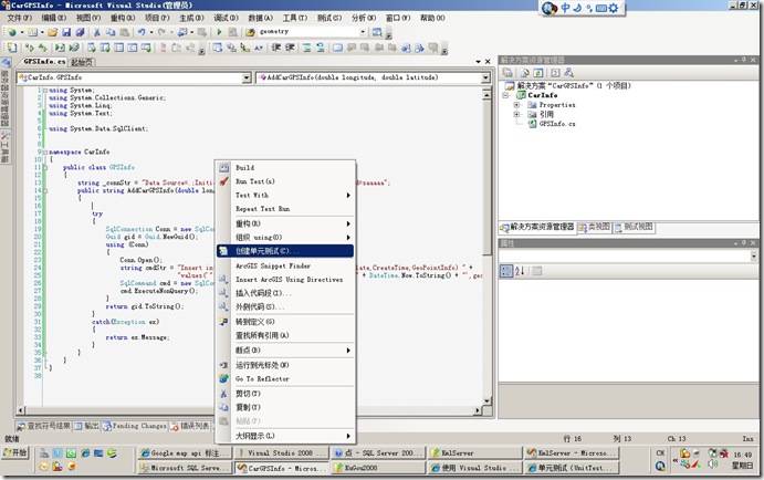 创建单元测试。在方法名上右击,然后单击“创建单元测试”选项,打开“创建单元测试”对话框