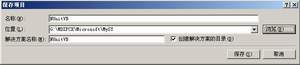 在该对话框中,“项目类型”我选择的是“Visual Basic”,如果想使用C#或者J#,请自行选择“其他语言”下的“Visual C#”或“Visual J#”,反正操作差不多,下边也都会介绍到,不过VC免谈了;“模板”我选的是“控制台应用程序”,您也可以选其它“模板”,我看的例子创建的是“类库”;名称请自行设定,VB、C#、J#项目我都建了,分别起名为NUnitVB、NUnitCS和NUnitJS,设置好后,点击“确定”按钮。此时项目虽已创建,但尚未保存,请点击“文件”->“全部保存”,打开“保存项目”对话框: