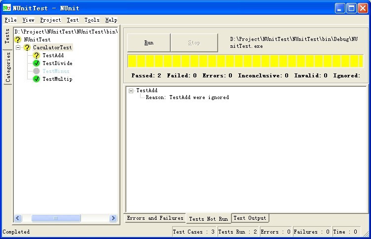 2.Ignore与Explicity:Ignore属性表示在NUnit中Run Test的时候忽略标记为Ignore的方法;标记为Explicity的测试方法,当前仅当在被单独选中时才Run。