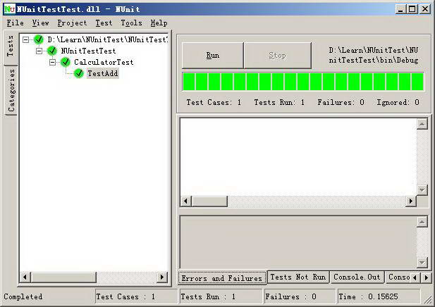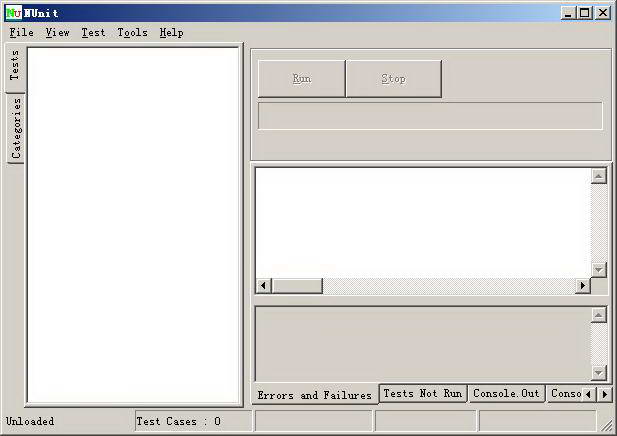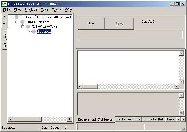对Add()方法的单元测试代码已经完成了,接下来我们运行下载解压后文件夹中的nunit.exe,程序界面如图: