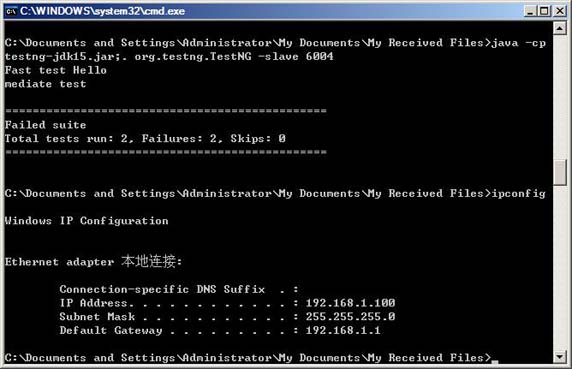 这样,一个 TestNG 实例将会被启动,并且等待即将到来的连接请求。如果有需要,可以在多台机器上以 slave 模式启动 TestNG 实例。