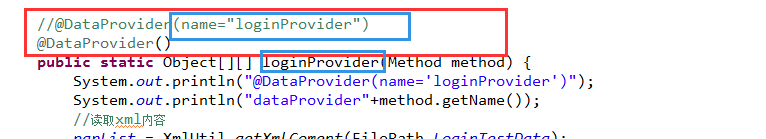 在test方法中指明DataProvider,如果DataProvider有指明name值,那么在test中使用name,如果没有名字,使用对应的方面名