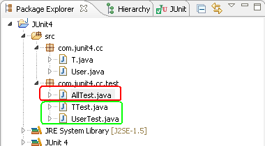 下面在测试包(com.junit4.cc.test)下面创建一个测试类,内容如下: