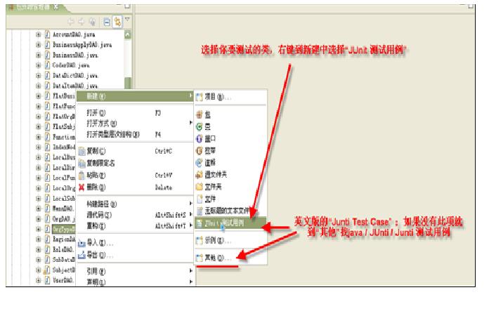 如下图:右键选择你要测试的类,在新建中点击“JUnit 测试用例”,