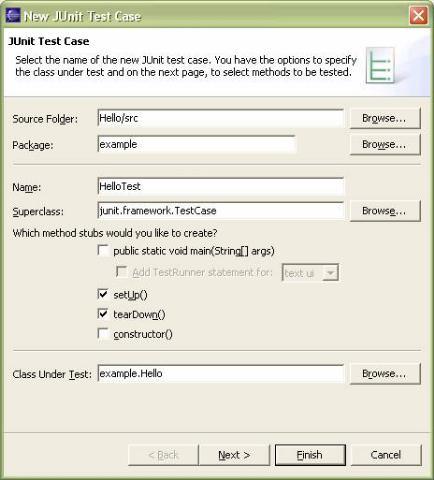 Eclipse会询问是否添加junit.jar包,确定后新建一个HelloTest类,用来测试Hello类。