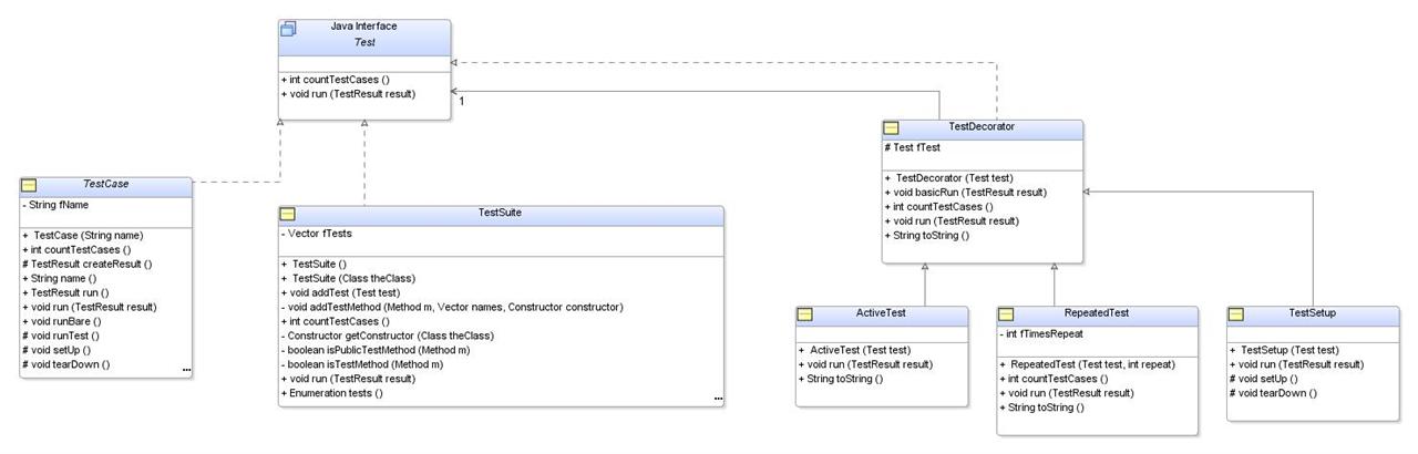 JUnit的源码相比于spring和hibernate来说比较简单,但麻雀虽小,五脏俱全,其中用到了比较多的设计模式。很多人已经在网上分享了他们对JUnit源码解读心得,我这篇小文谈不出什么新意,本来不打算写,可近工作上暂时无事可做,那写写吧,结合《设计模式》来看看。