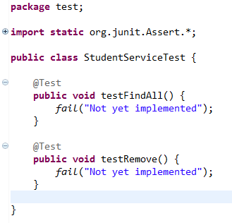 这里import static是引入Assert类中静态属性或静态方法的写法。原来要Assert.fail(),现在只需直接fial()即可,即省略了Assert。 其实不通过Junit新建向导来建立也可以,随便建立一个新类后,只需在方法上加入@Test注解即可。 下一篇,我们将具体介绍下Junit的知识点。