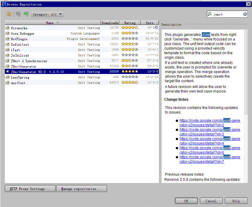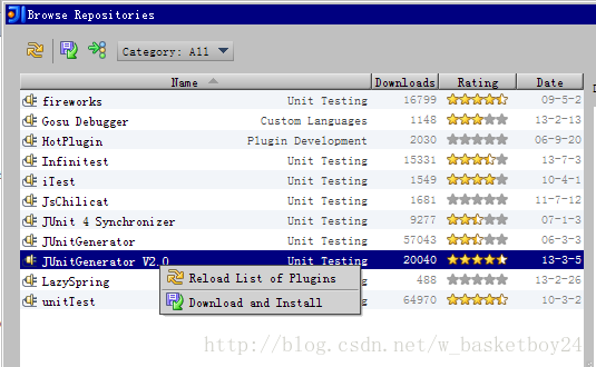 从插件资源库中搜索JunitGenerator V2.0版本,在插件位置,鼠标右击