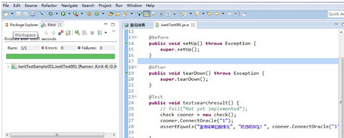 5、运行JunitTest001.java(Run As-Junit test),运行结果如下: