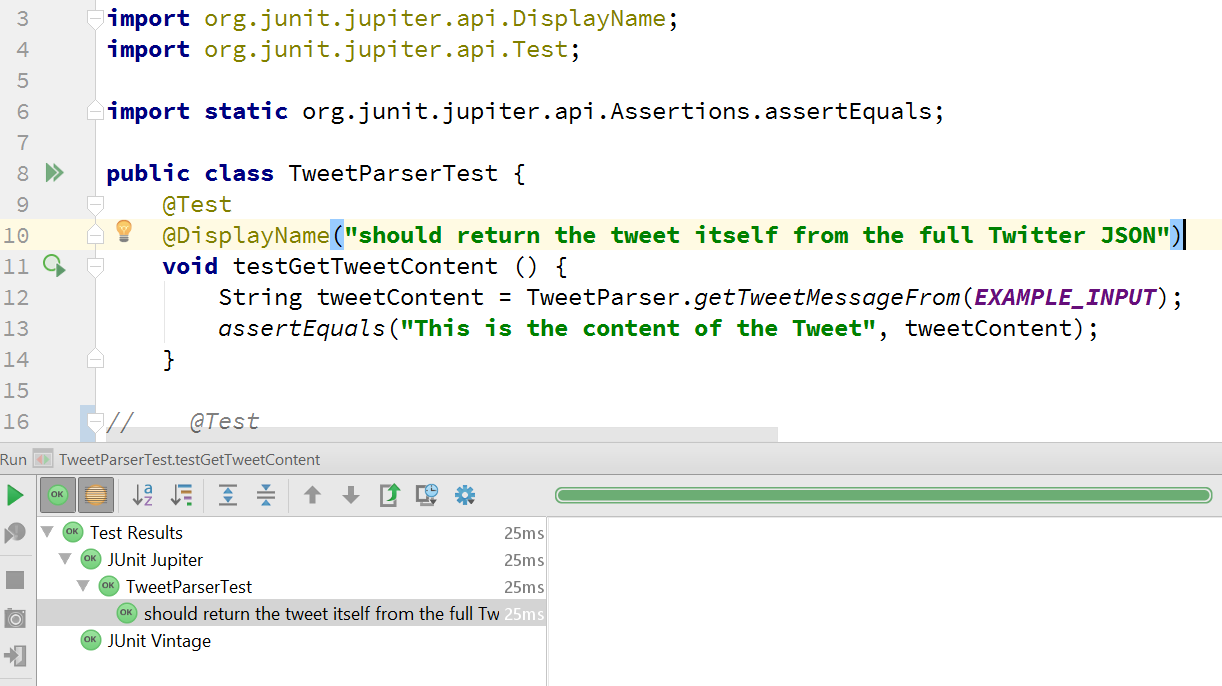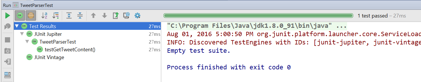 运行这些测试会得到一个与在IntelliJ IDEA运行窗口相似的结果: