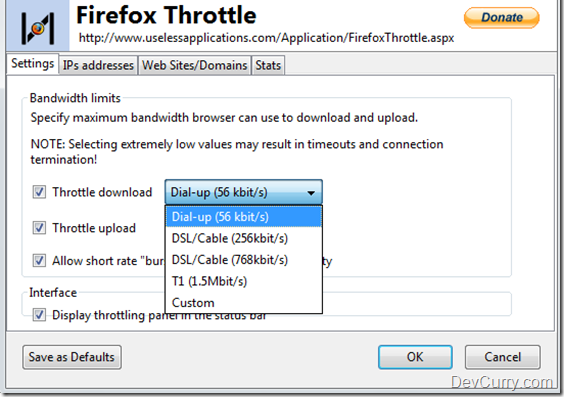 Firefox Throttle是一个能够让你控制上传/下载速率、监视当前带宽使用的Firefox扩展工具。在其具有的功能特征中,我喜欢的一项是,它能让你限制本地网络连接。很酷!下面的是这个插件在运行时的截图。