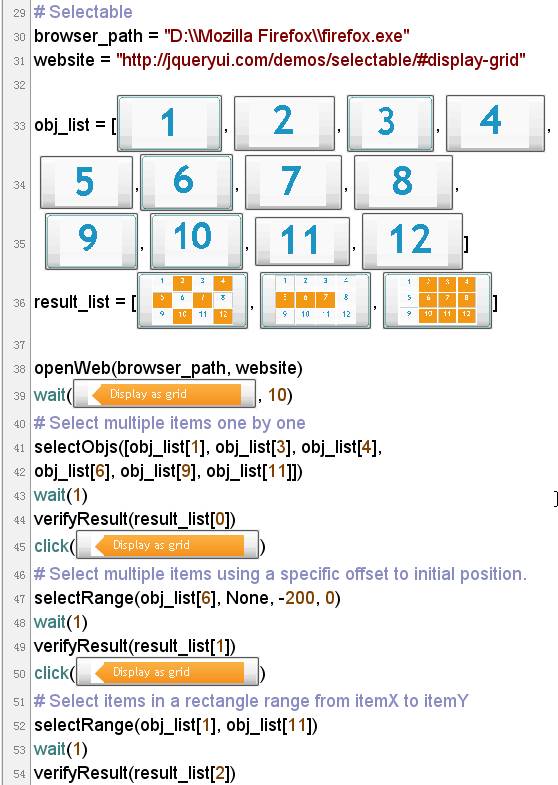 本例中,实现了对 Web 页面中多个对象的间隔选取和批量框选。其脚本片段如图 5 所示。