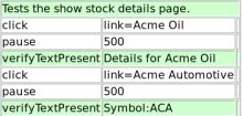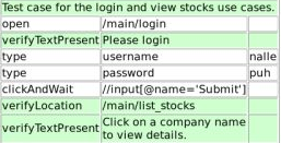 查看股票页面显示一个公司列表。用于这个页面的测试用例非常简单,所以被包括在前一个测试用例的后面。该测试用例验证当前位置是否为 /main/list_stocks,以及页面是否包含文本 Click on a company name to view details。