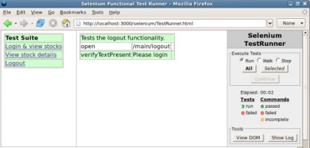 图 2 展示了用于这些需求的 Selenium 测试用例。注意,我是在运行测试之后截取屏幕快照的。绿色箭头表示成功地通过验证的断言。