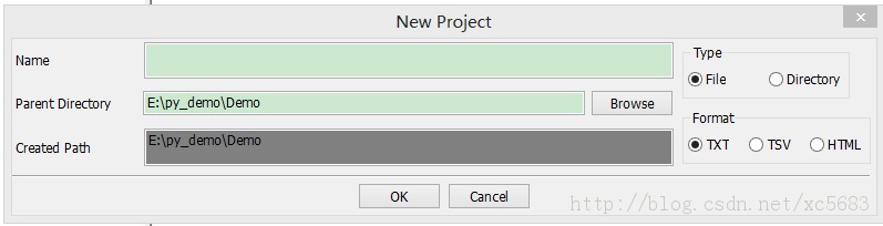 名字和路径可以自己设置,右边有个Type和Format,对于项目,推荐Type使用Directory,Format选择txt,这样便于管理