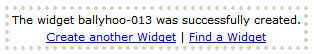 单击 Create Widget 将促使 Groovlet 处理这一请求。如果所有内容正确的话(即名字和定义不为空,并且数据库中不存在该实例),Groovlet 将创建一个新的小部件实例并类似图 3 所示的状态页面: