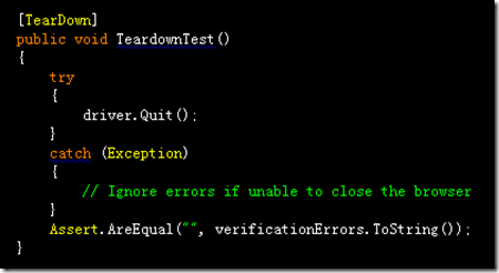 3、重复代码过多,不光是找元素的代码driver.FindElement(By.Id("XX")),还有一些我没有列出来的自动生成的IsElementPresent、CloseAlertAndGetItsText,不得不说这些方法是很有用的,但是如果你再录制一个自动生成的脚本,这些方法又会出现,并且完全相同。在程序设计中,这些方法在维护的时候会非常令人头疼,尤其是多起来了以后。