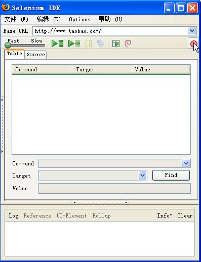 1. 安装Selenium IDE这个Firefox插件。安装后打开Firefox,从“工具”菜单选择“Selenium IDE”-打开Selenium IDE。如下图所示,红色的圆点控制脚本录制的开始和停止。