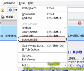 前面说过,Selenium IDE是Firefox的一个插件,是可以进行脚本录制以及案例转换,所以Selenium IDE+Firebug会成为你日后写测试案例的两大助手(IE下可以使用Selenium Core+IEDevelperToolBar)。
